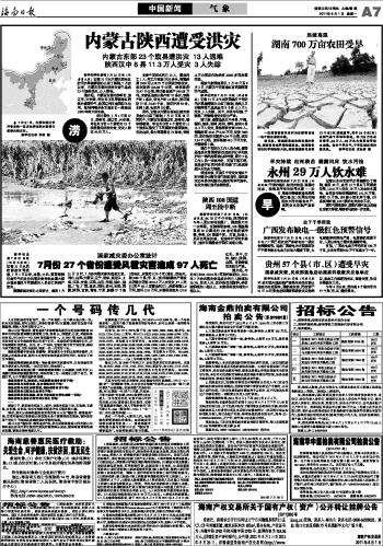 | 海南日报 中国新闻气 象 007 2011-08-011 2011年08月01日 星期一 |
