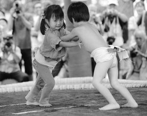 8月1日,日本东京府中市大国魂寺举行“八朔相扑节”并进行了儿童相扑比赛。该活动在每年的8月1日举行,为农作物顺利生长祈祷。当天约50名小学生参加了相扑比赛。 新华社发