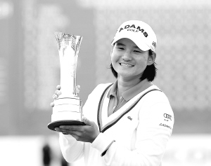 8月1日,在卡诺斯蒂举行的女子高尔夫英国公开赛中,曾雅尼以低于标准杆16杆的272杆夺冠。图为中华台北女将曾雅妮在颁奖仪式上。 新华社发