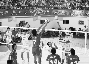 | “力加杯”省排球联赛已成为海南省品牌体育比赛。小新发 |