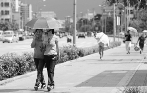 从北方来海口养老、居住在蓝天路的吴先生感叹海口夏日的阳光真是毒辣,一出家门就被晒得发晕。而从西安来海南医学院附属医院实习的小丹则说:“从龙华路到解放西路,基本上可以不用撑伞。如果海口多几条像解放西路这样的道路就好了。”在海口,随着城市园林绿化的不断发展,一些路段的行道树已经成荫,为市民出行提供了一份荫凉。但也有不少路段的人行道暴露在太阳底下,因此市民希望城市的绿色“凉伞”能够越做越大,让更多的人能够在炎炎夏日享受出行的清凉。