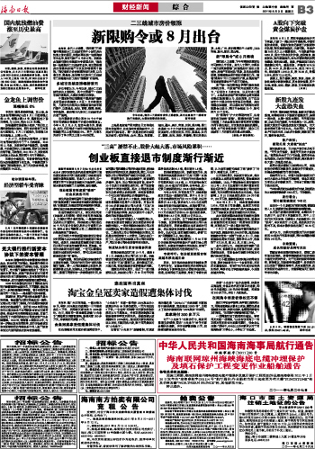 海南日报 财经新闻综合 011 2011-08-031 2011年08月03日 星期三