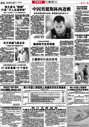 海南日报 体育新闻综合 014 2011-08-031 2011年08月03日 星期三