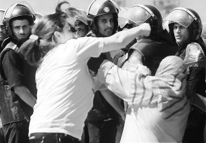 被告席设在一个黑色金属笼内,用钢丝防护网包裹,靠近被告家属所处区域,足以防止示威者家属“空袭”穆巴拉克等人。