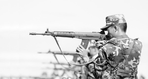 8月3日,武警海南总队2011年度军事训练尖子大比武拉开序幕,120名训练尖子在20多个课目中展开比武较量。 这次大比武,设置了武装越野、400米障碍、单兵擒敌术、轻武器射击、防暴弹投掷以及部分新装备的使用等20多个军事训练课目。 本报记者 李英挺 通 讯 员 吴建明 陈千学 摄影报道