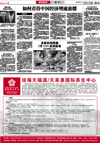 海南日报 财经新闻综合 011 2011-08-041 2011年08月04日 星期四