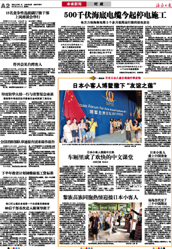 海南日报 本省新闻时政 002 2011-08-041 2011年08月04日 星期四