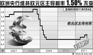 新华社柏林8月4日电 (记者郑启航)欧洲中央银行4日在法兰克福总部宣布,维持欧元区现行1.50%的主导利率不变。