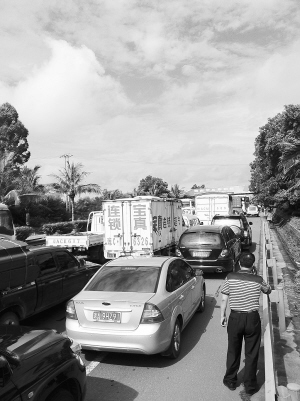 司机陈先生向记者抱怨,当天要到洋浦参加一个重要会议,想不到被堵在半路,给自己造成的损失不小。