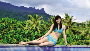 | 台湾女孩刘雅培在保亭七仙岭下 |