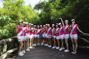 | 18强选手在保亭呀诺达景区门前合影 |