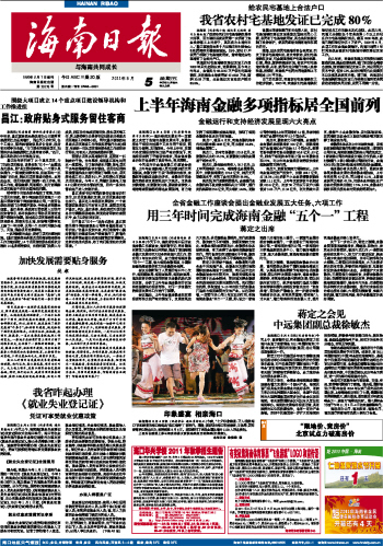海南日报 头版 001 2011-08-051 2011年08月05日 星期五