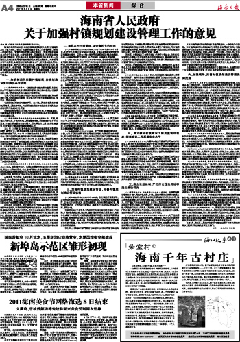 海南省人民政府关于加强村镇规划建设管理工作的意见