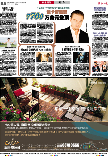 迪卡普里奥7700万美元登顶