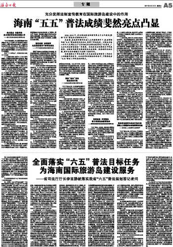 全面落实“六五”普法目标任务 为海南国际旅游岛建设服务