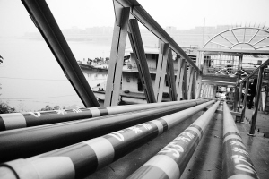事故发生地湖南省益阳市资江一桥附近的资江河道(8月5日摄)。8月5日上午,湖南省益阳市城区因为一取水口发生石油泄漏,城区暂停止自来水供应。8月4日晚,在湖南省益阳市资江一桥附近的资江河道上,一艘运送石油的船只发生泄漏,这一河段属于益阳市自来水厂资江河道取水口处,发生了一定程度的油质污染。肇事船舶已被扣留,肇事船主等相关责任人已由公安机关控制。目前益阳市部分城区已恢复供水。 新华社发