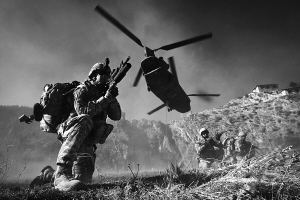 这张拍摄于2008年11月20日的资料照片显示,一架支努干直升机搭载美军士兵和阿富汗国防军士兵在阿富汗霍斯特省山区执行任务。 新华社/法新