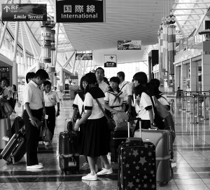 | 孩子们正在仙台机场等待出发去海南岛。 |