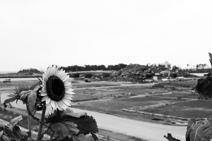 这里有一个神社,现在看就是一片高的空地。5月21日,温家宝总理到这里献上了花圈。7月31日正好是周日,不少日本人甚至举家来到这里,为逝去的亡灵祈祷。尽管从这里望出去整个地区依然是一片废墟,但这里的向日葵、菊花却开得格外耀眼,给人以希望,给人以生机。