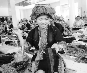 | ↑ 8月7日上午,嬉水节黎锦苗绣比赛在保亭文化中心进行,黎族织锦和苗族刺绣高手同场竞技。
