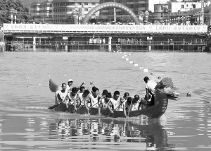 | ←8月7日上午,2011中国海南七仙温泉嬉水节全省龙舟邀请赛在七仙西河火热开战,保亭新政镇代表队夺得冠军。 |
