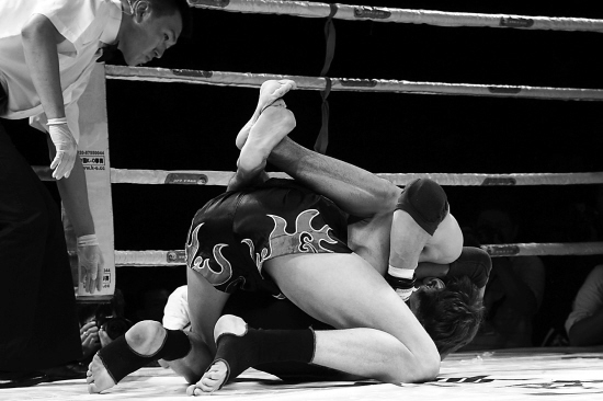 津门“武侠” 胜俄国“大力士” 7日,在天津津门武侠武术搏击挑战赛中,天津选手计县(下前)战胜了俄罗斯选手安德烈。 新华社发