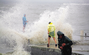 | ↑8月8日,蓬莱海边海浪拍岸。 新华社发 |