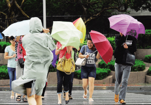 | ←8月8日,烟台市民顶着风雨前行。 |