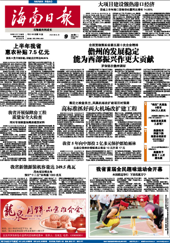 海南日报 头版 001 2011-08-091 2011年08月09日 星期二