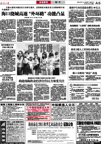 海南日报 本省新闻 005 2011-08-091 2011年08月09日 星期二