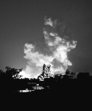 8月9日,利比亚首都的黎波里遭到北约空袭后升起浓烟。 当天凌晨,的黎波里遭到北约空袭以来最强烈的一轮轰炸。 新华社发