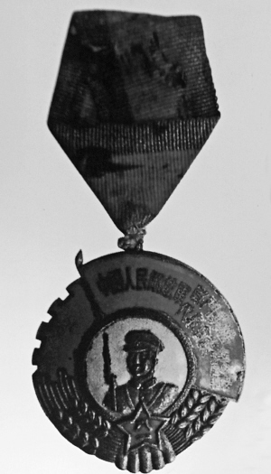 | ↑陈理文被授予的全国战斗英雄纪念章