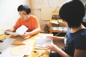 8月9日,在山西运城市一生源地信用助学贷款管理中心,一名大学生(右)在办理生源地信用助学贷款。 日前,教育部发布数据显示,2010年,我国普通高等学校发放国家助学贷款113.57亿,增长21.37%。其中生源地助学贷款因程序便捷备受青睐,占到整个助学贷款的近70%。 新华社发