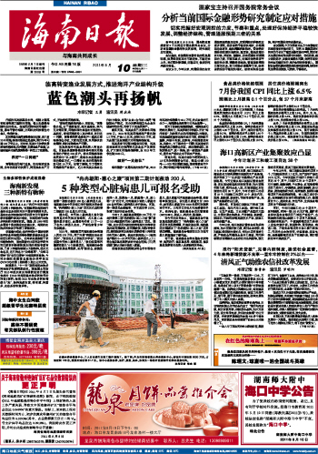 海南日报 头版 001 2011-08-101 2011年08月10日 星期三