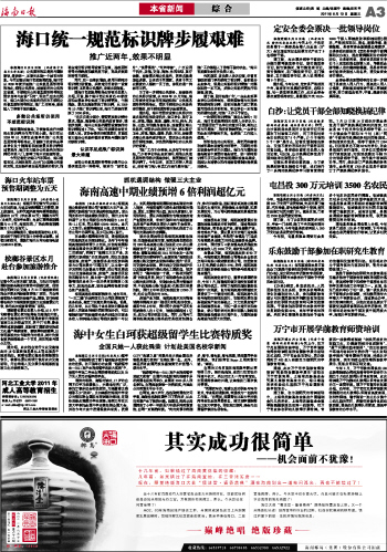 海南日报 本省新闻 003 2011-08-101 2011年08月10日 星期三