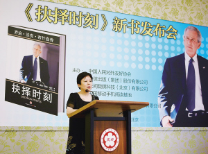 | 8月10日,中国人民对外友好协会副会长李小林在发布会上介绍新书《抉择时刻》。