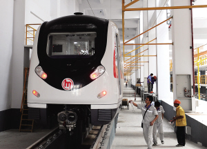 8月10日,工作人员在对抵达的首列地铁车辆进行巡检。 杭州地铁1号线车辆一列有六节车厢,额定载客能力为1436人。车辆最高运行速度为80公里/小时,全线平均旅行速度不小于37公里/小时。预计杭州地铁1号线主线铺轨将在今年国庆前完成。 新华社记者 徐昱 摄