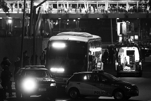 8月9日,在巴西里约热内卢,几辆警车围在被劫持的大巴旁边。 当天,一些武装歹徒试图抢劫这辆公交车上的乘客,在警察赶到后又劫持了20名人质,并与警方发生交火,但他们最终还是选择了投降。据当地媒体报道,至少有4人在此次事件中受伤。 新华社/法新