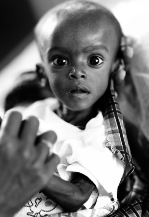 | 8月5日,在肯尼亚和索马里边境的达达布难民营,一名索马里儿童在哈加德拉儿童营养康复中心等待治疗。联合国难民署统计显示,近期新抵达难民死亡率高达每万人每天7.4人,其中大部分死者是5岁以下儿童,营养不良是造成死亡的主要因素之一。 新华社记者 赵颖全 摄 |