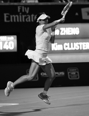10日,在多伦多举行的2011年加拿大罗杰斯杯网球赛女单比赛中,因对手、现WTA排名第二位的克里斯特尔斯因伤退赛,中国选手郑洁获胜晋级第三轮。 新华社发