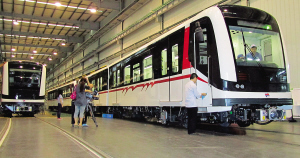 8月10日,中国第一列出口欧洲的新型轻轨列车在南车株洲电力机车有限公司下线。据悉,由中国南车株洲电力机车有限公司为土耳其伊兹密尔市量身订制的该型列车每辆车均具有单独运行动力,可根据客流高低任意组合、灵活编组。 新华社发
