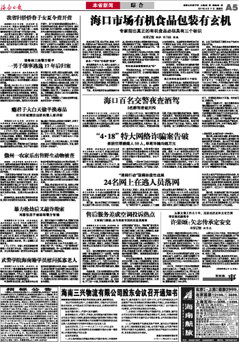海南日报 本省新闻 005 2011-08-111 2011年08月11日 星期四