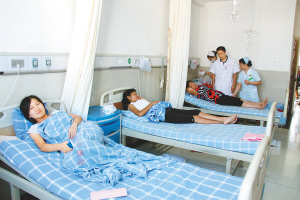 8月10日,患者在医院接受治疗。江西瑞昌8月9日百余人饮用自来水中毒事件原因基本查明,系一家基本停产两三年的名为“宏益冶炼有限公司”的企业,将含氯化钠、铜精矿等的工业污水长期随意排放,污水渗入土壤腐蚀地下自来水管致破裂并污染了水质。 此次饮水污染范围涉及桂林街道办事处3个村民小组180户及少数企业。目前,附近村民和施工人员已有112人因饮用了受污染的水中毒入院接受免费治疗,其中6人已出院。 新华社发(魏东升 摄)