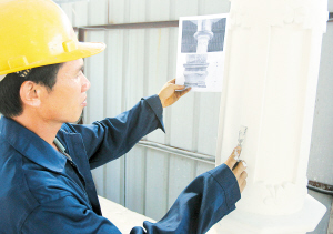 海口骑楼老街 修旧如旧 8月11日,海口市水巷口骑楼历史建筑改造现场,技术人员对照骑楼历史资料制作的第一根柱子样板基本完成,尽可能保留原貌“修旧如旧”。 据悉,海口骑楼建筑历史文化街区保护与综合整治项目正有序地推进中。 本报记者 李英挺 摄