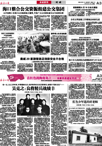 海南日报 本省新闻时 政 003 2011-08-131 2011年08月13日 星期六