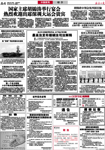 海南日报 中国新闻 综 合 004 2011-08-131 2011年08月13日 星期六