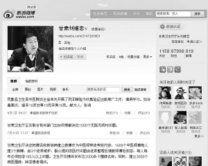 新浪实名认证微博“甘肃刘维忠”近日发布了一条要求医师“微博问诊”的信息,引起了网友的广泛转载与关注,博主的认证身份为“甘肃省卫生厅厅长”。