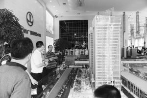 | 购房者在河北廊坊市中心一个售楼大厅内咨询。 新华社发 |