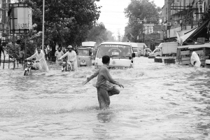 南部至少21人死亡 8月13日,在巴基斯坦东部城市拉合尔,暴雨引发的洪水淹没了街道。 巴基斯坦近日大雨引发洪水,在南部地区已造成至少21人死亡。 新华社发