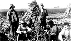 | ←伪满时期,东北土地上耕种的日本开拓团村民。 |
